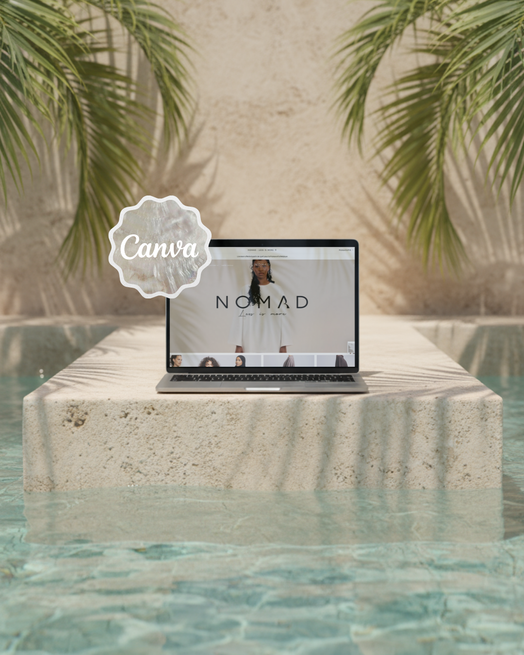 Ce mockup MacBook Canva aesthetic a été imaginé pour sublimer vos designs web dans une ambiance fraîche, lumineuse et apaisante — comme une respiration douce sous le soleil. ☁️💧🤍