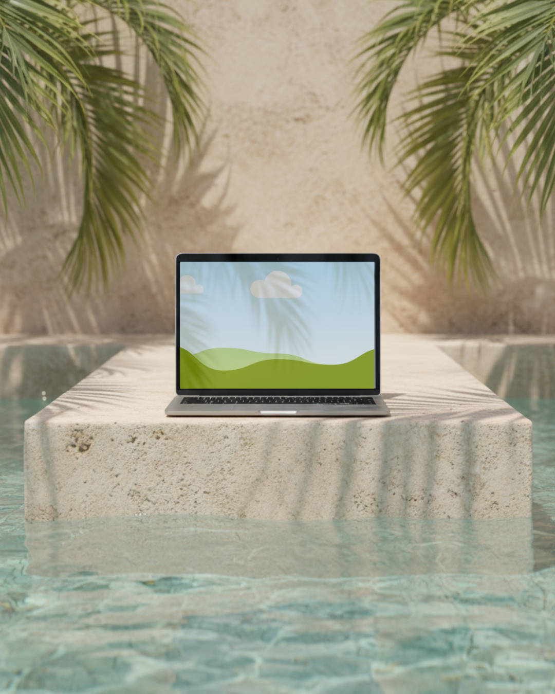 Entre eau cristalline et pierre minérale, l’Aqua Serenità MacBook Mockup évoque la sérénité d’un après-midi d’été au bord d’un bassin méditerranéen.